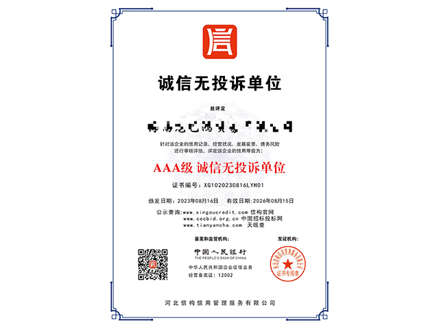 AAA級立信單位認證是對企業(yè)信用狀況的高度認可,表明該企業(yè)具有極高的信用度和良好的還···